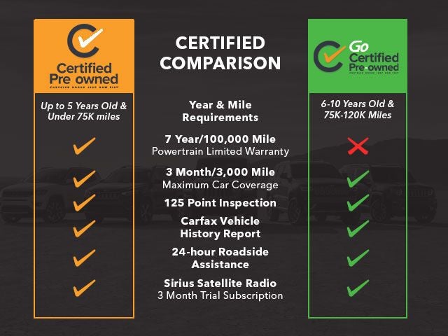 * Vehicles Between 6-10 Model Years and/or 75,001-120,000 Miles. Thorough Reconditioning Process Using Authentic Mopar Parts. 3-Month Trial Subscription for SiriusXM GuardianTM and Satellite Radio